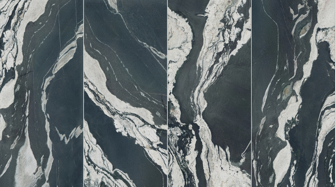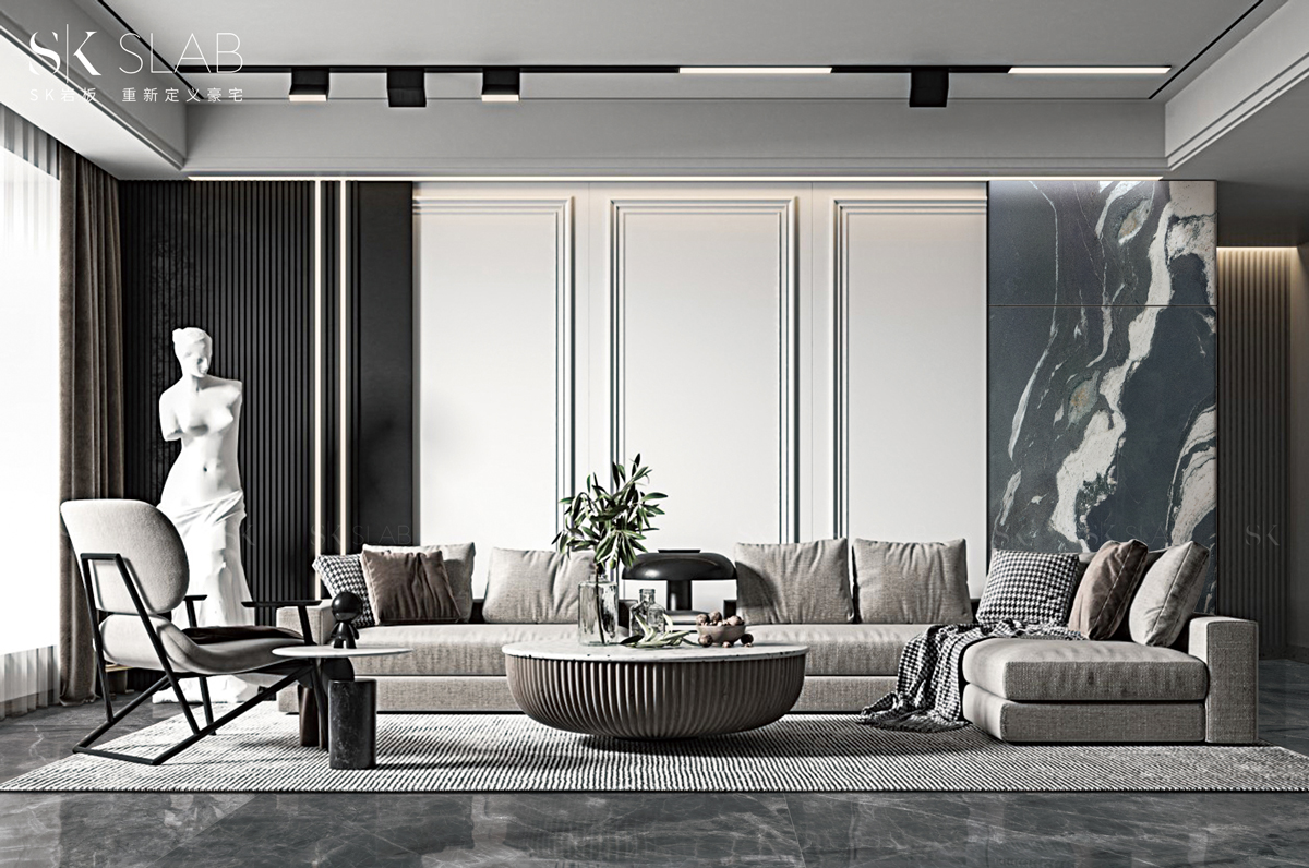黑白藝術的融合,大氣奔放的流紋像天然山脈的肌理,極強的視覺沖擊力,讓空間無限延伸,神秘而有富生命力與藝術美感。