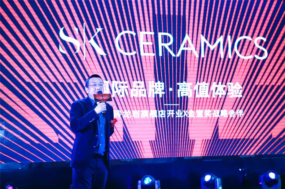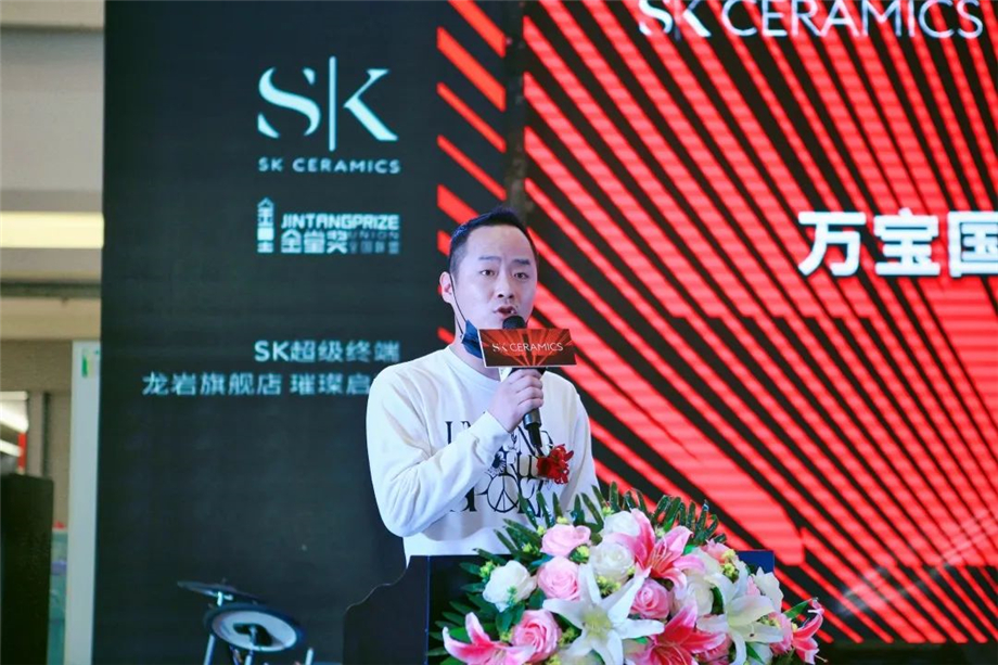 龍巖SK瓷磚董事長楊天堯先生向參加開業(yè)慶典的貴賓表達了誠摯的謝意和歡迎。同時楊董表示:SK瓷磚,國際品牌,高值定位,強大的品牌實力與金堂獎攜手合作,定能更好賦能終端,迎合市場新的消費升級。楊董相信憑借自身團隊的務(wù)實精進、強大的總部實力、高顏值、高品質(zhì)的高端產(chǎn)品以及極致的服務(wù),定能更好地滿足龍巖高端消費群體的需求。