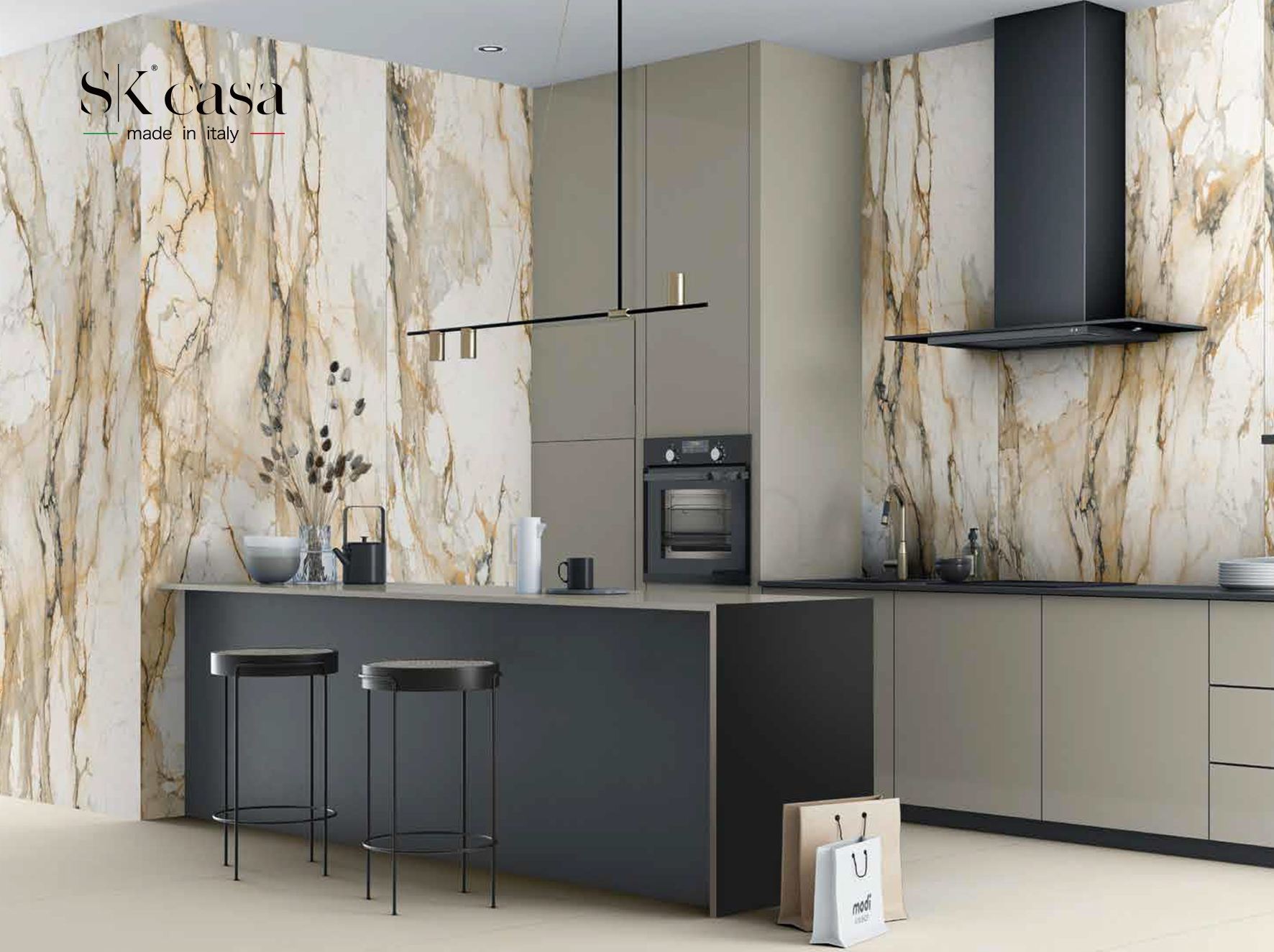 細(xì)膩的紋理與豐富的色彩層次,精準(zhǔn)捕捉了大理石渾然天成的美感,展現(xiàn)出高貴而典雅的韻味。設(shè)計(jì)師巧妙地將大自然的鬼斧神工融入現(xiàn)代裝飾材料之中,讓這款巖板不僅具有視覺上的震撼力,更賦予了空間一種自然與奢華并存的獨(dú)特氛圍。