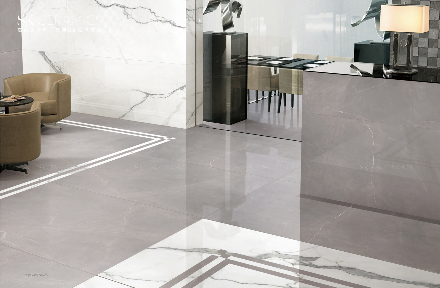 色彩:暖灰+灰白線紋